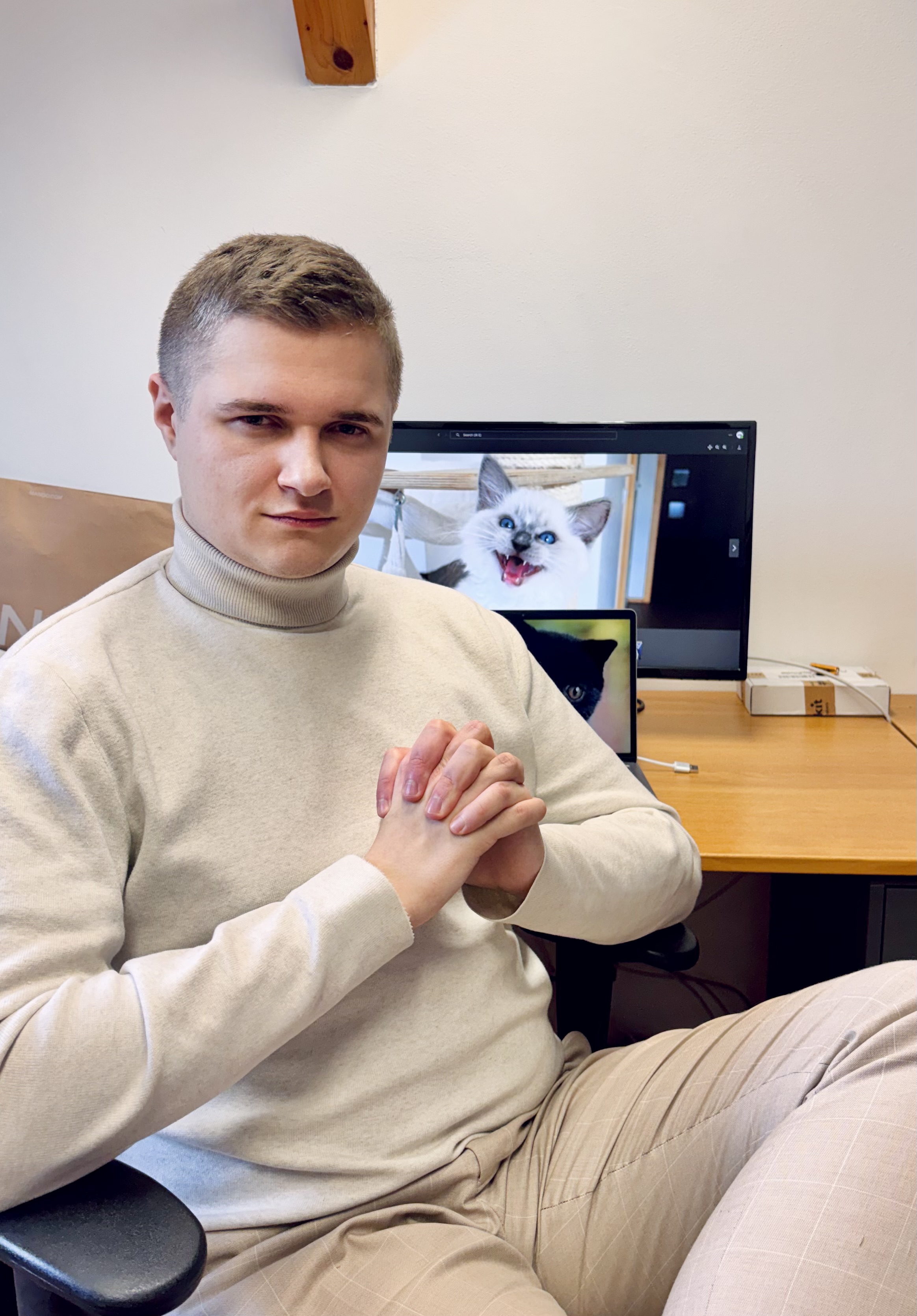 „Začalo to hraním her, kdy mě napadlo, že by mě bavilo je i vytvářet. Na střední jsem chodil na elektronickou průmyslovku, kde jsem se začal naplno věnovat programování. Jako maturitní projekt jsem vyvinul aplikaci pro chytrou domácnost, která hlídala světla, teplotu a vlhkost. Poté jsem v programování pokračoval na vysoké škole tady v Plzni na FAVce na ZČU. Svou bakalářskou práci jsem pojal jako takový „Tinder pro zvířata”. Je to aplikace, která pomáhá budoucím majitelům najít v útulcích toho správného parťáka. Snažil jsem se tak propojit moderní technologie s pomocí zvířatům."